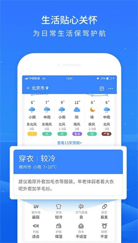 3、权威可靠的气象信息,包括天气预报、风力风向趋势、降水量趋势、湿度趋势、生活指数等。