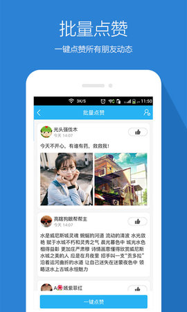 4.秒赞/秒评:一键秒赞自己、好友、明星,24小时完美流畅运行,0等待,0失败;