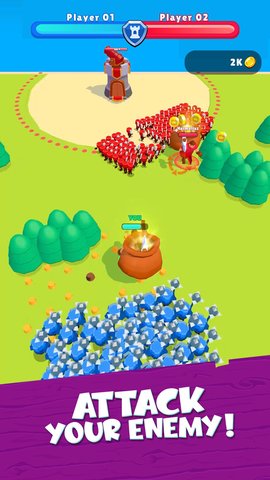 玩家来到游戏中需求成为一个一般的火柴人,你的任务是收服更多的火柴人,你们可以组建成一支戎行了,然后你们就可以和其他部队进行对抗了,感兴趣的话可以随时来这儿游玩,很多精彩的玩法都在这儿等候你的莅临!