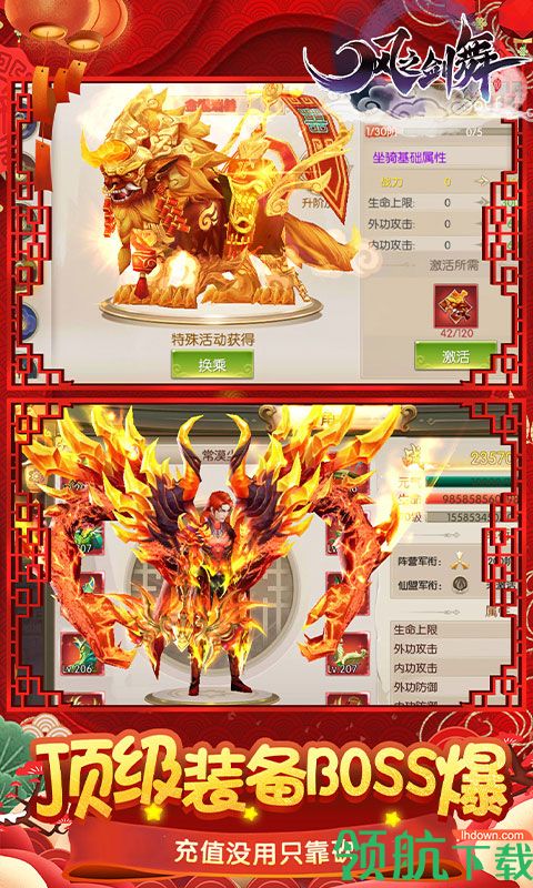 7.阵营争夺、地宫、仙盟战、跨服战场、阵营攻防,紧张刺激的百人PVP,更有极品红色坐骑等你来领!