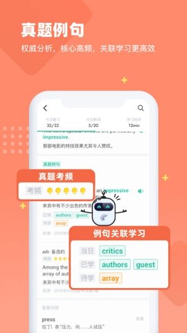 全新大纲词汇,结合真题例句、真题考频、例句关联学习,记忆更牢固。