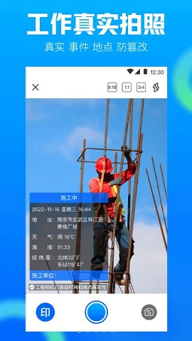 工程相机ios版是专为苹果手机用户推出的现场施工拍照记录软件,支持添加时间、位置(经纬度、高度)、天气等水印信息,也支持自定义标记批注,内置云存储功能,支持批量管理施工图库,多用于建筑施工、电力工程等场景,有需要的朋友不要错过哦!