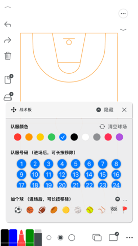 5、左侧工具按钮,可以使用很多简易图形画图小工具,和使用一些特殊笔如彩笔软笔和标志笔。以及一些设定比如:防止使用 Apple Pencil 时候手划干扰,使用使用水印等等。
