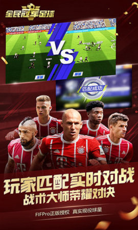 《全民冠军足球》是由FIFPro官方正版授权的一款策略经营足球游戏,拥有2000+名真实球员实名登场。游戏采用全球领先的惯性与动作捕捉技术以及真实球员参与动作录制。除球员外,还摇拥有皇马,拜仁等多家豪门俱乐部的授权。游戏独创了”英雄时刻”玩法,让玩家体验亲临比赛现场般的操作感受,是一款真正为全世界足球爱好者量身定制的高品质足球手游。