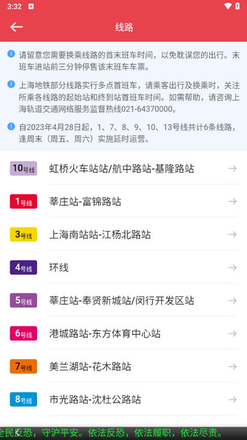 8、上海地铁各站点首末班车时间查询;