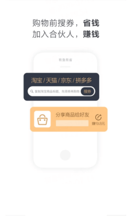 全国知名电商平台集合,大牌海量优惠券随时领,一键领券,自用省钱,分享赚钱,一年帮你省上万,让你年年有鱼,单单有省。